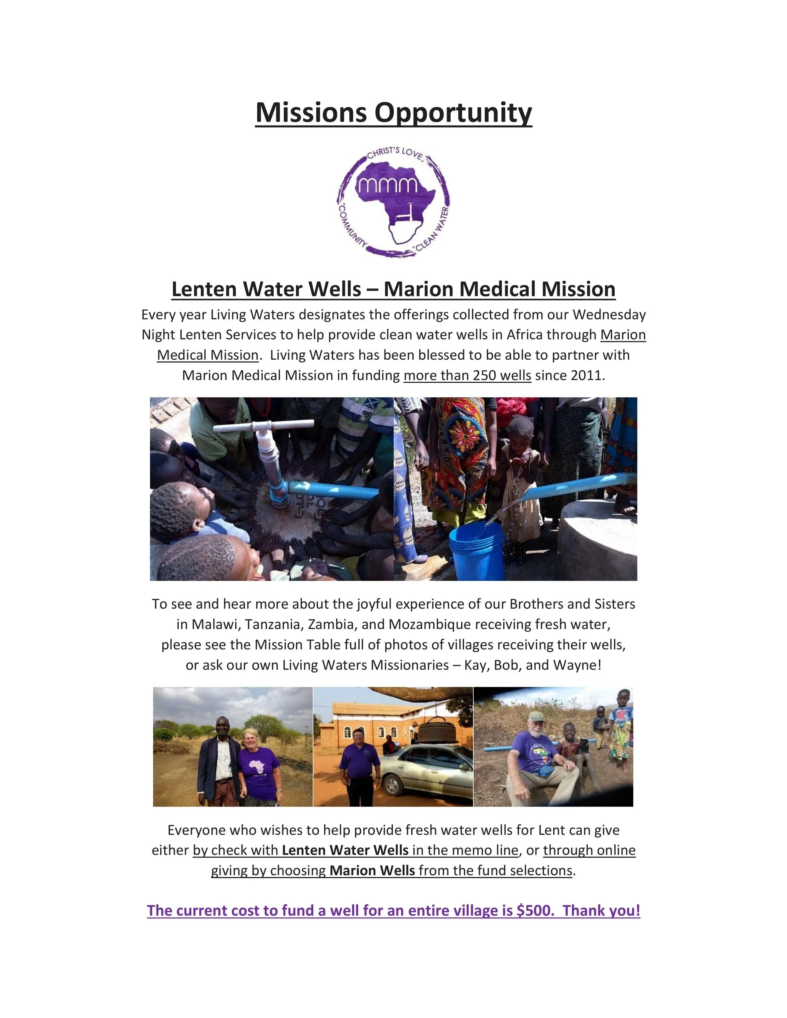 Come Worship with us safety outdoors at Living Waters! Bring lawn chairs and set up in front of the church on the East side.